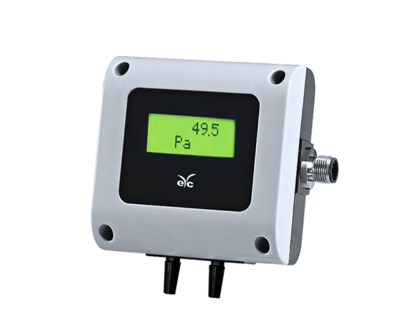 Featuring a hot-wire type differential pressure sensor, this device offers high sensitivity at low pressures, with a minimum measurable value of 1 Pa and low zero-point drift. It supports a differential pressure range of ±50 to ±1500 Pa and can withstand up to 1 bar of pressure. Compact and easy to install, it includes a square root function for air velocity conversion, analog output, and an optional RS-485 communication function. A DIP switch allows for easy range adjustments and square root function activation.