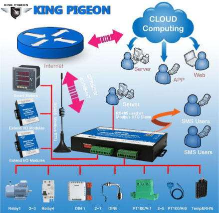 The Cellular IoT Modbus RTU is an industrial class, high reliability, high stability, and programmable Remote Terminal Unit (RTU). It embedded 32-Bit High Performance Microprocessor MCU, inbuilt industrial Cellular module. It provides 8 digital inputs, 6 analog or PT100 Resistance Temperature Detector (RTD) inputs, 4 relay outputs, 1 ambient sensor input for monitoring onsite temperature and humidity, and RS485 serial port, supports 80/224/320 mapping registers via Modbus RTU protocol. It can monitoring and operates the I/O ports by SMS, APP, Web Server, internet, timers and programmed inter-lock events automatically.